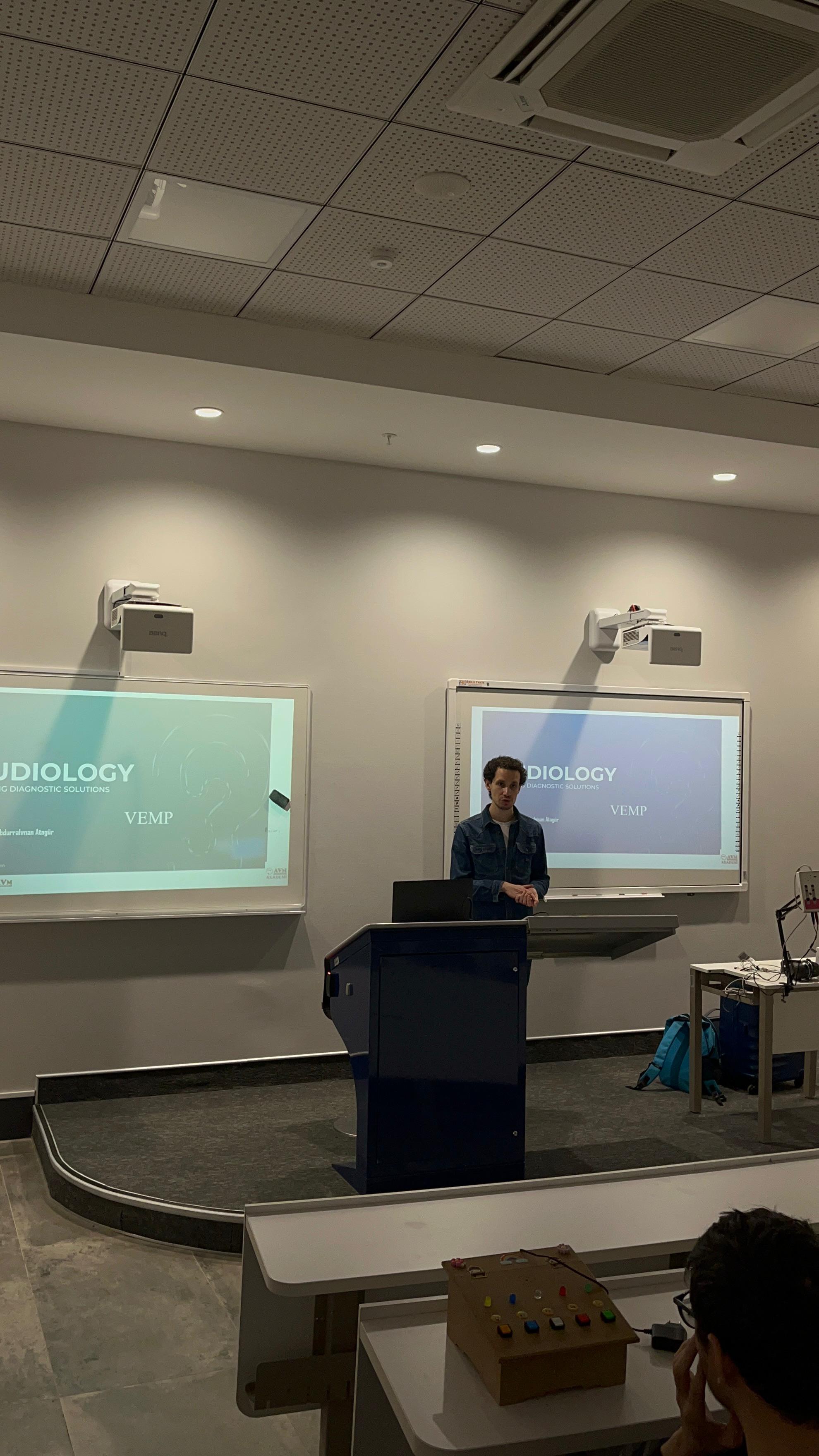 26 Kasım 2025 tarihinde İstanbul Güney Kampüsü'nde Duyumed firması tarafından Uzm. Odyolog Dilruba Demirel'in işitme cihazları REM ve fitting uygulamaları ile ilgili olarak öğrencilerimize bir sunum gerçekleştirilmiştir. Sunumun ardından, firmaların odyolog adaylarını işe alırken nelere dikkat ettikleri konusunda bilgiler paylaşılmıştır.