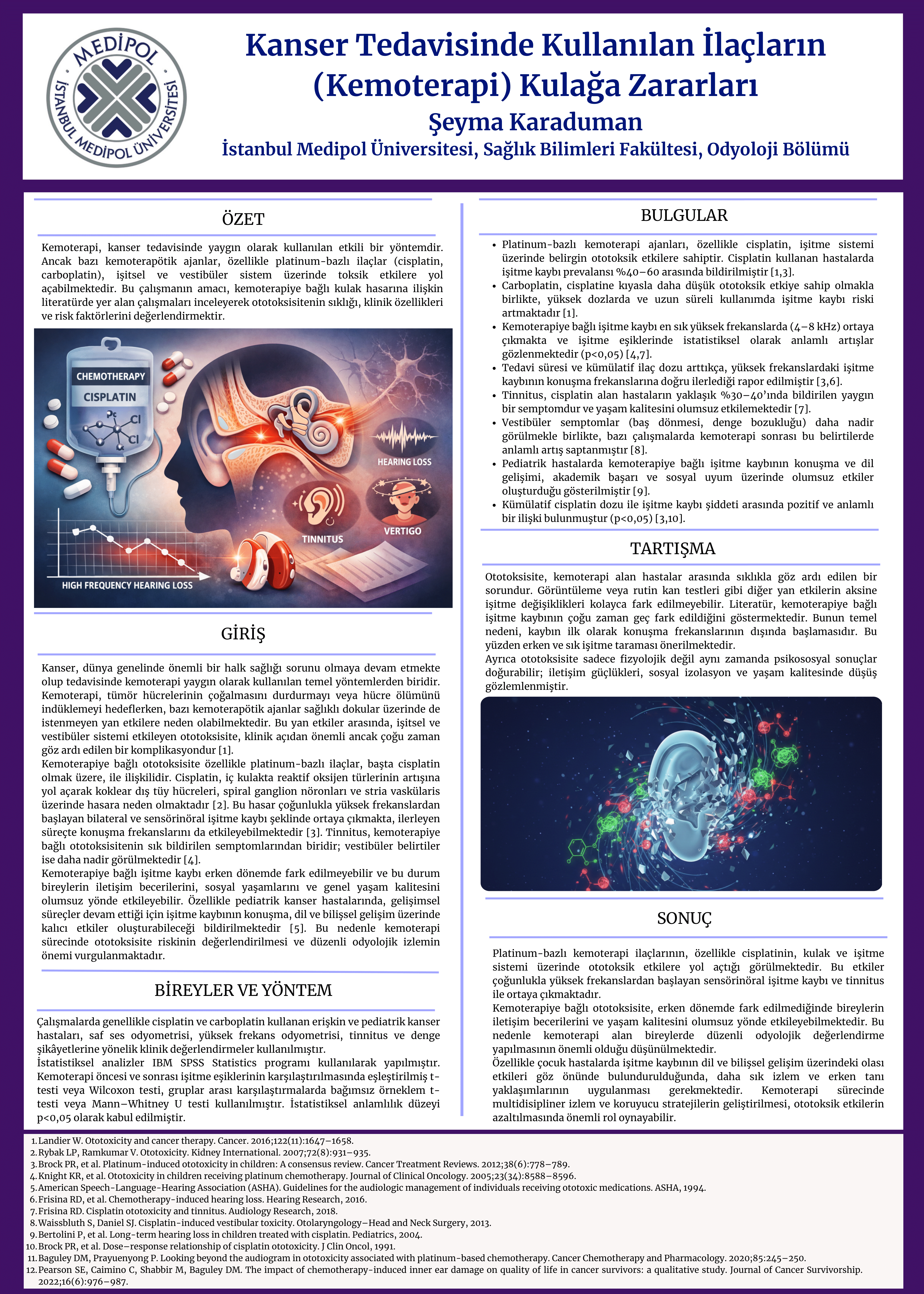 İstanbul Medipol Üniversitesi Sağlık Bilimleri Enstitüsü Odyoloji Anabilim Dalı’nda yüksek lisans öğrencisi Ebru Akınca, tezini jüri karşısında başarıyla savundu. Prof. Dr. Bülent Şerbetçioğlu, Doç. Dr. Bahtiyar Çelikgün ve Dr. Öğr. Üyesi Eyup Kara jüri olarak katıldı.