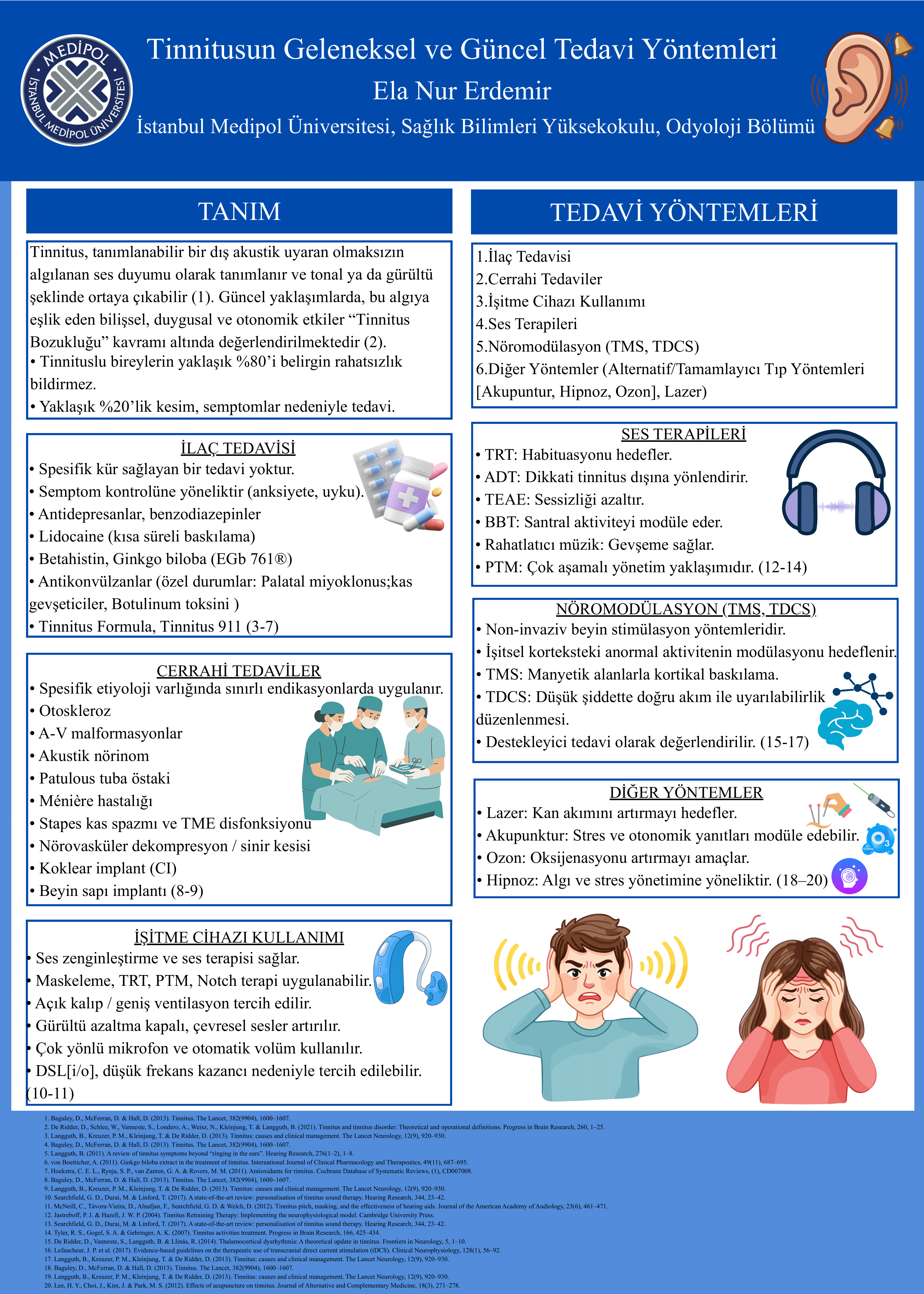 24 Kasım’da, Koç Üniversitesi’nden Büşra Köse tinnitus patofizyolojisinde nöroinflamasyonun rolü, Medipol Üniversitesi’nden Mevlüde Işık ise tinnitusta olası tedavi yöntemleri üzerine yaptıkları sunumlarla katılımcılara nörobilim ve odyolojiyi birleştiren güçlü bir disiplinler arası perspektif sundular.